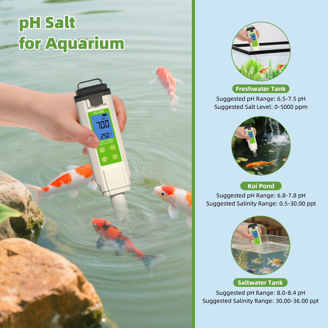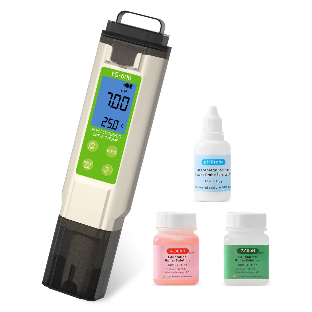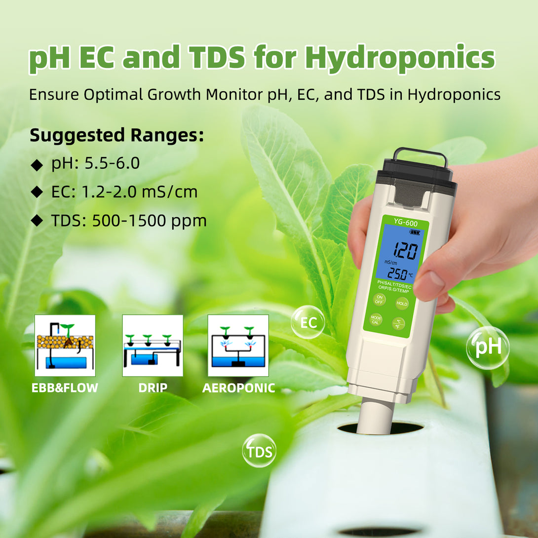 The versatile 4-in-1 Water Quality Tester provides comprehensive water analysis by measuring pH, TDS, EC, and temperature. With a high-precision glass electrode, backlit LCD display, one-touch calibration, and IP67 waterproof rating, it's ideal for hydroponics, aquaculture, aquariums, RO/DI water filtration, swimming pools, laboratories, and more.