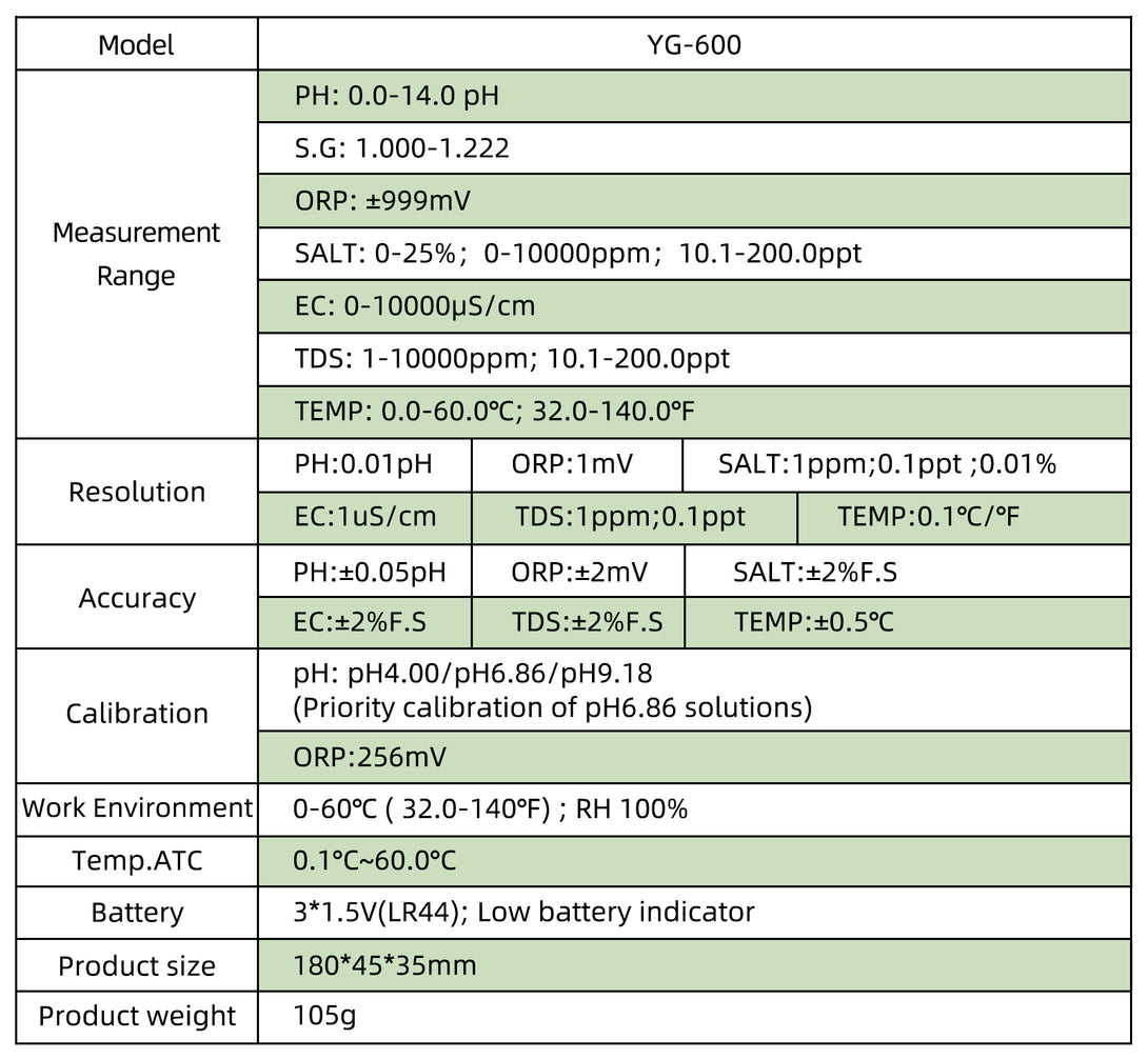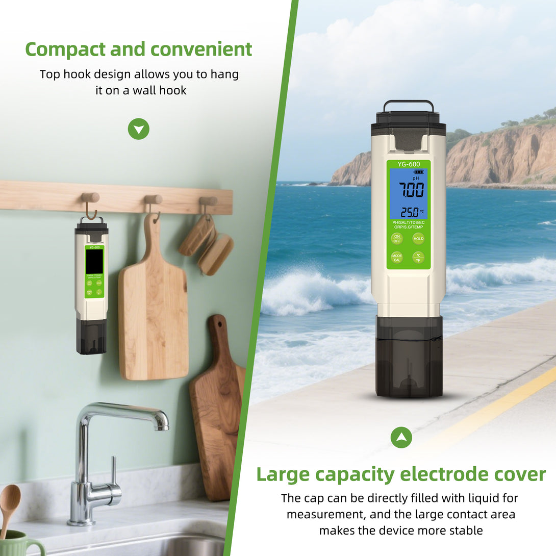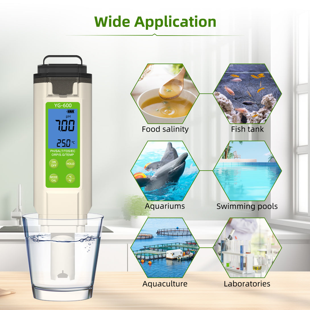 Measures four essential parameters—pH, TDS, EC, and temperature—in one portable and easy-to-use device, simplifying water quality monitoring for various applications.