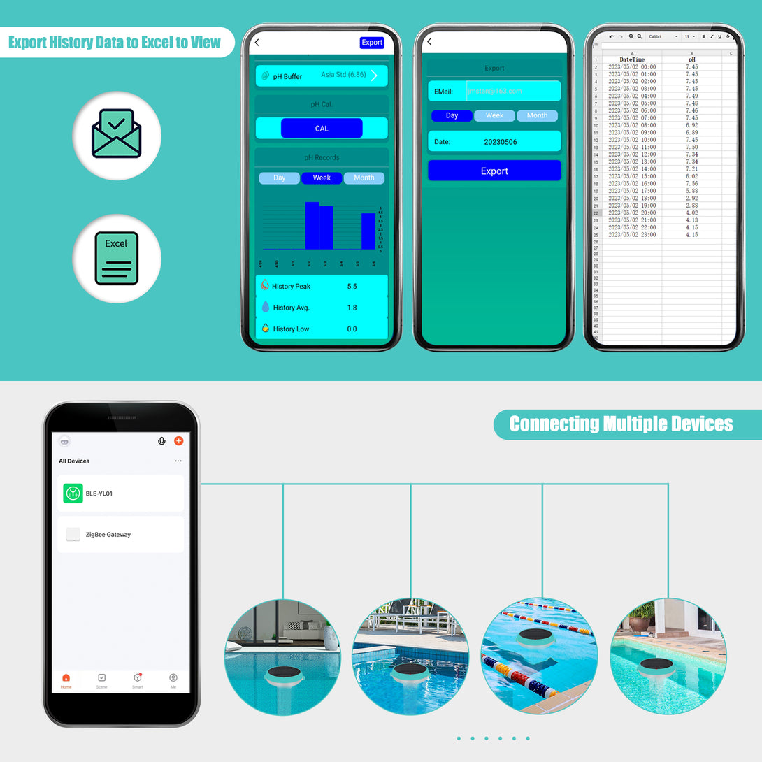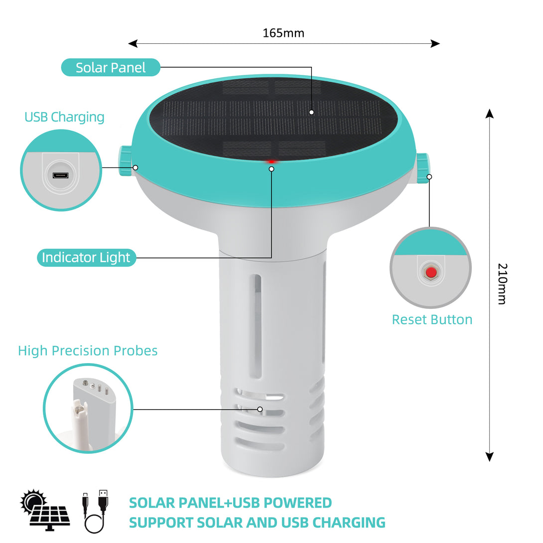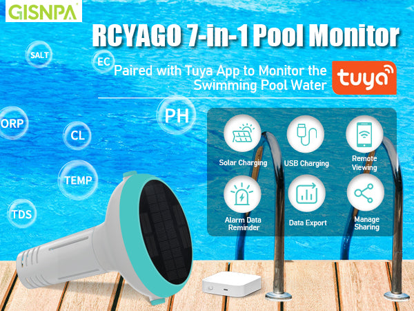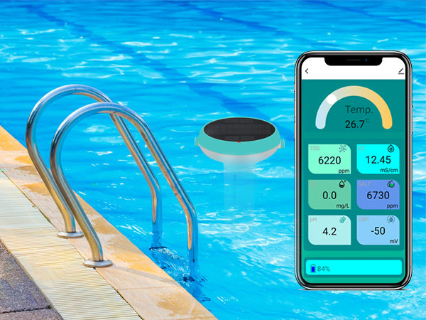 Elevate your pool maintenance with the 7-in-1 Smart Pool Water Monitor, an essential water quality pool tester for homeowners and professionals seeking optimal water health. This advanced device wirelessly tracks pH, Chlorine, Salt, TDS, EC, ORP, and Temperature in real-time, syncing data directly to your smartphone. Benefit from instant alerts for out-of-range levels, saving up to 30% on chemicals, and enjoy versatile support for all chlorine and saltwater pool types, all with no subscription fees.