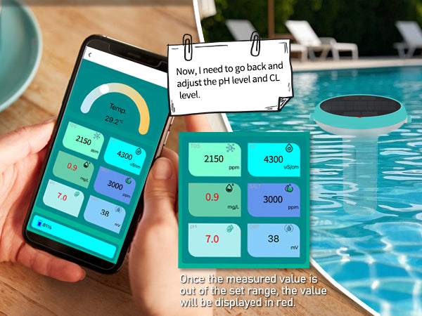 Get instant smart app notifications when water measurements go beyond the safe range, enabling timely action for a consistently clean and healthy pool.