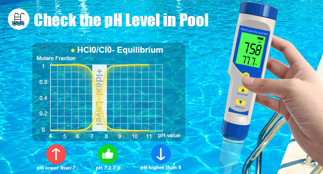 It's recommended to test pH and chlorine at least once a week, more frequently during heavy use, after rain, or during changing weather conditions.
