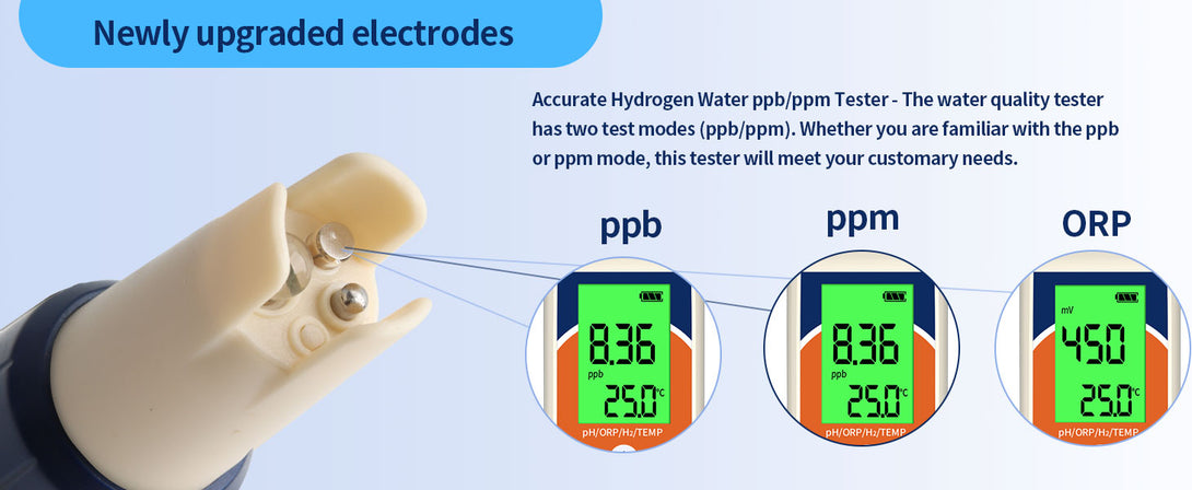 Our testers can measure multiple parameters including pH, TDS (Total Dissolved Solids), EC (Electrical Conductivity), ORP (Oxidation-Reduction Potential), Salinity, Hydrogen (H₂), and Temperature.