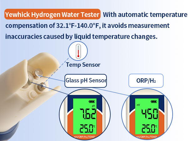The Yieryi Digital Water Quality Monitor offers precise measurement of pH, ORP, hydrogen content (H₂), and temperature. With advanced sensor technology, a backlit LCD, ATC, and an IP67 waterproof design, it's ideal for monitoring water quality in aquariums, drinking water, kombucha/tea preparation, hydroponics, and more.