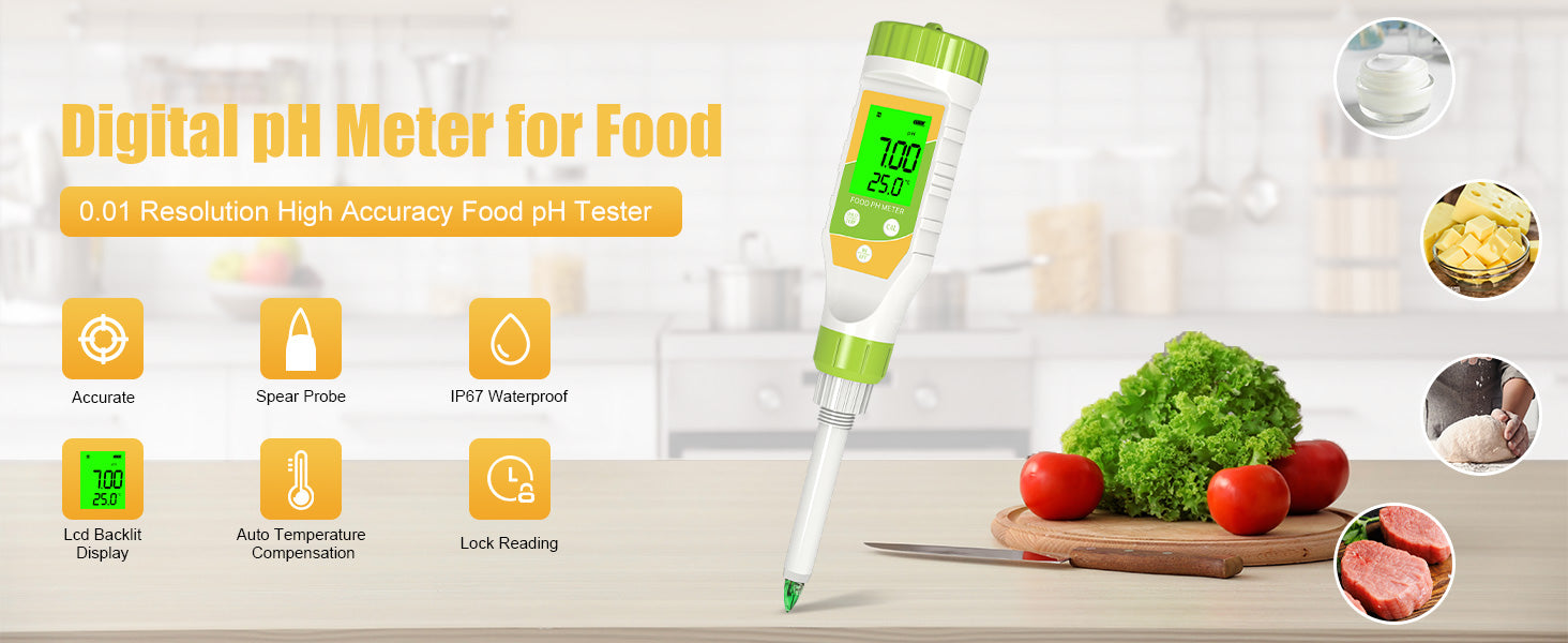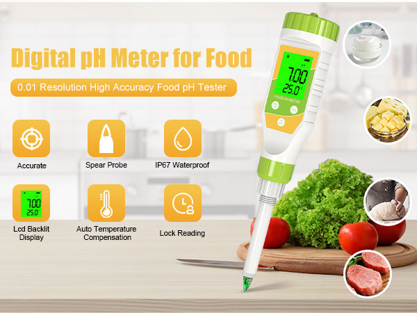 Specifically calibrated to test the pH of acidic foods like kimchi, kombucha, pickles, and yogurt. Ensures safe fermentation and flavor control.