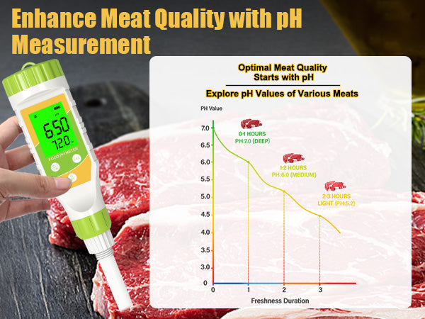 Verify the freshness and quality of raw meats and seafood. Rapid pH testing helps assess spoilage levels, ensuring only the freshest ingredients are used or served.