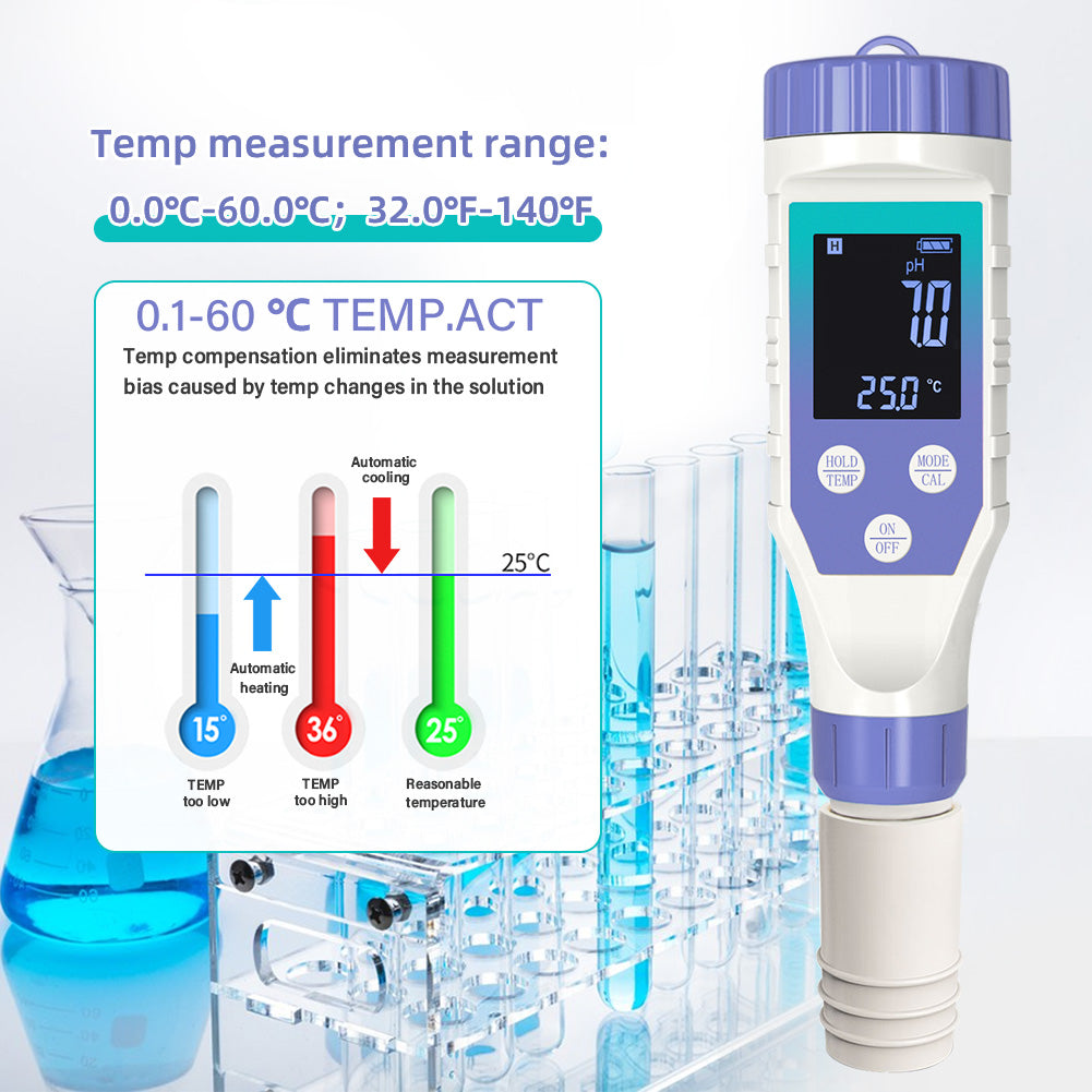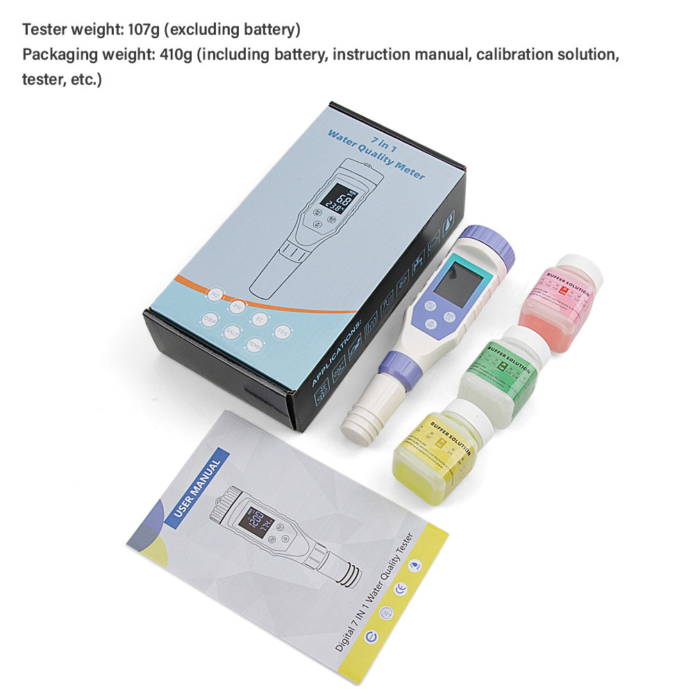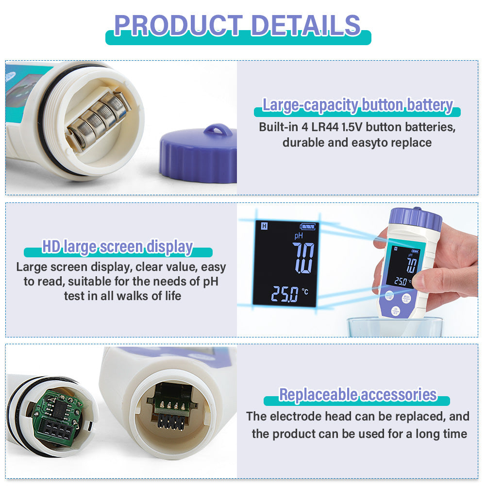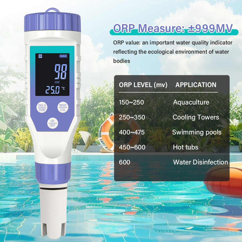 This image highlights the high-precision sensitive electrode of the 7-in-1 digital water quality tester, designed to ensure accurate pH measurement, reliable TDS detection, and stable EC and ORP readings in various water quality applications. Built with durable sensor components, the electrode is easy to clean and maintain—just rinse with distilled water or purified water after each use to preserve accuracy and extend device life. This essential component guarantees consistent performance in drinking water, aquariums, hydroponics, and pool testing.