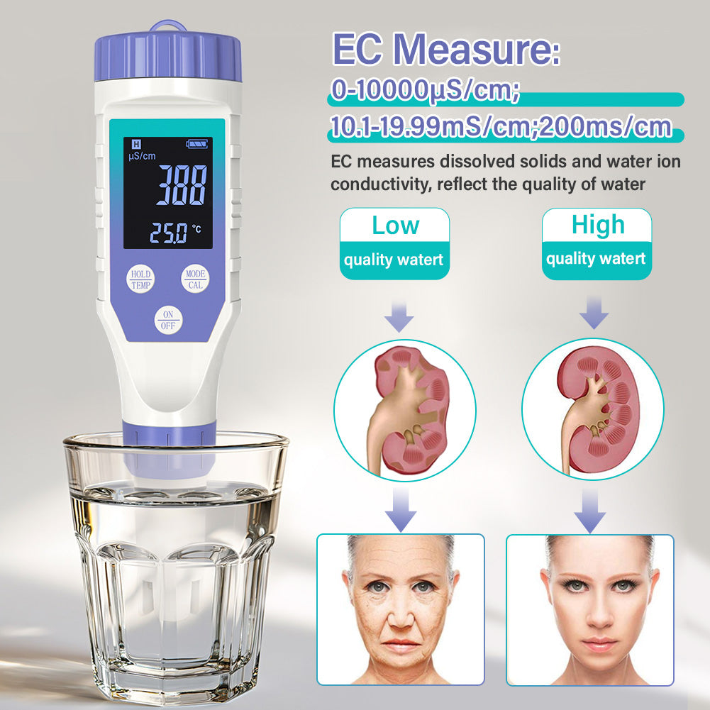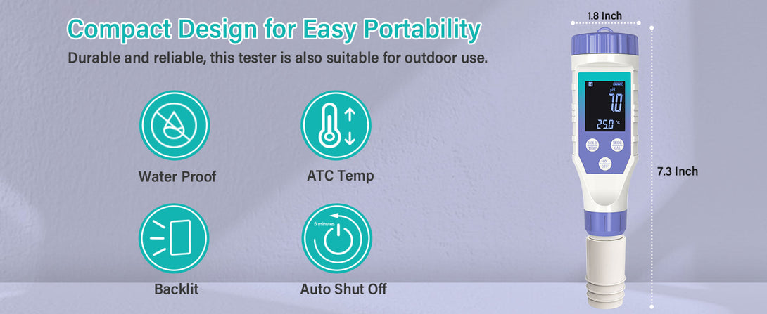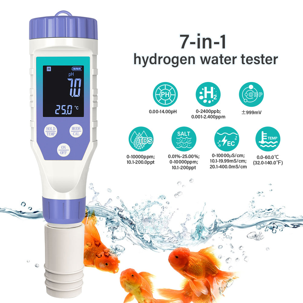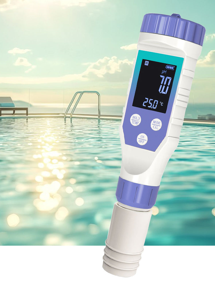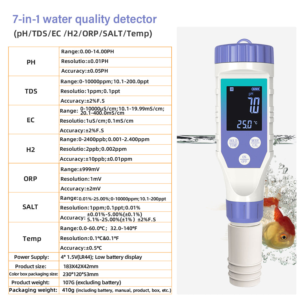 This image highlights the high-precision sensitive electrode of the 7-in-1 digital water quality tester, designed to ensure accurate pH measurement, reliable TDS detection, and stable EC and ORP readings in various water quality applications. Built with durable sensor components, the electrode is easy to clean and maintain—just rinse with distilled water or purified water after each use to preserve accuracy and extend device life. This essential component guarantees consistent performance in drinking water, aquariums, hydroponics, and pool testing.