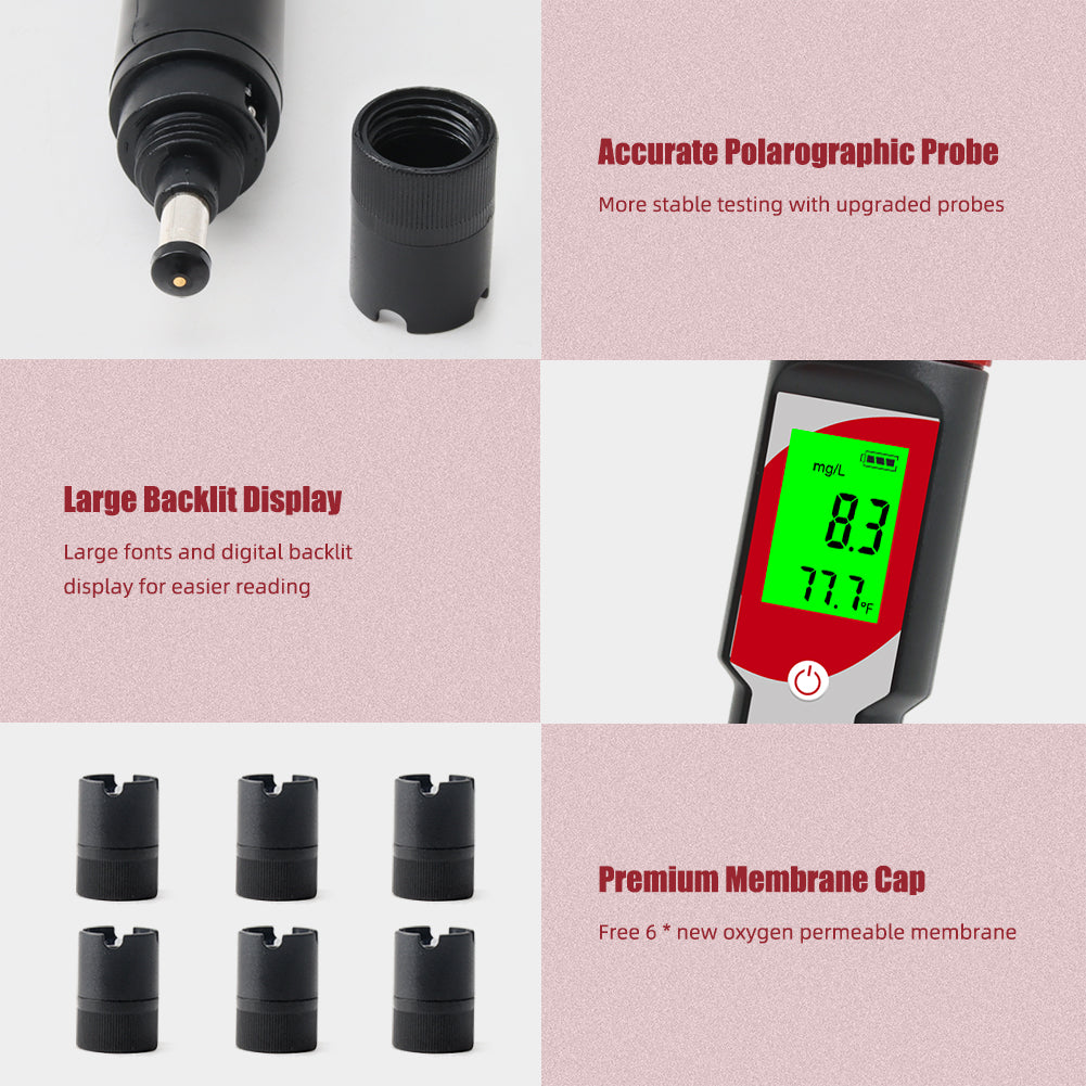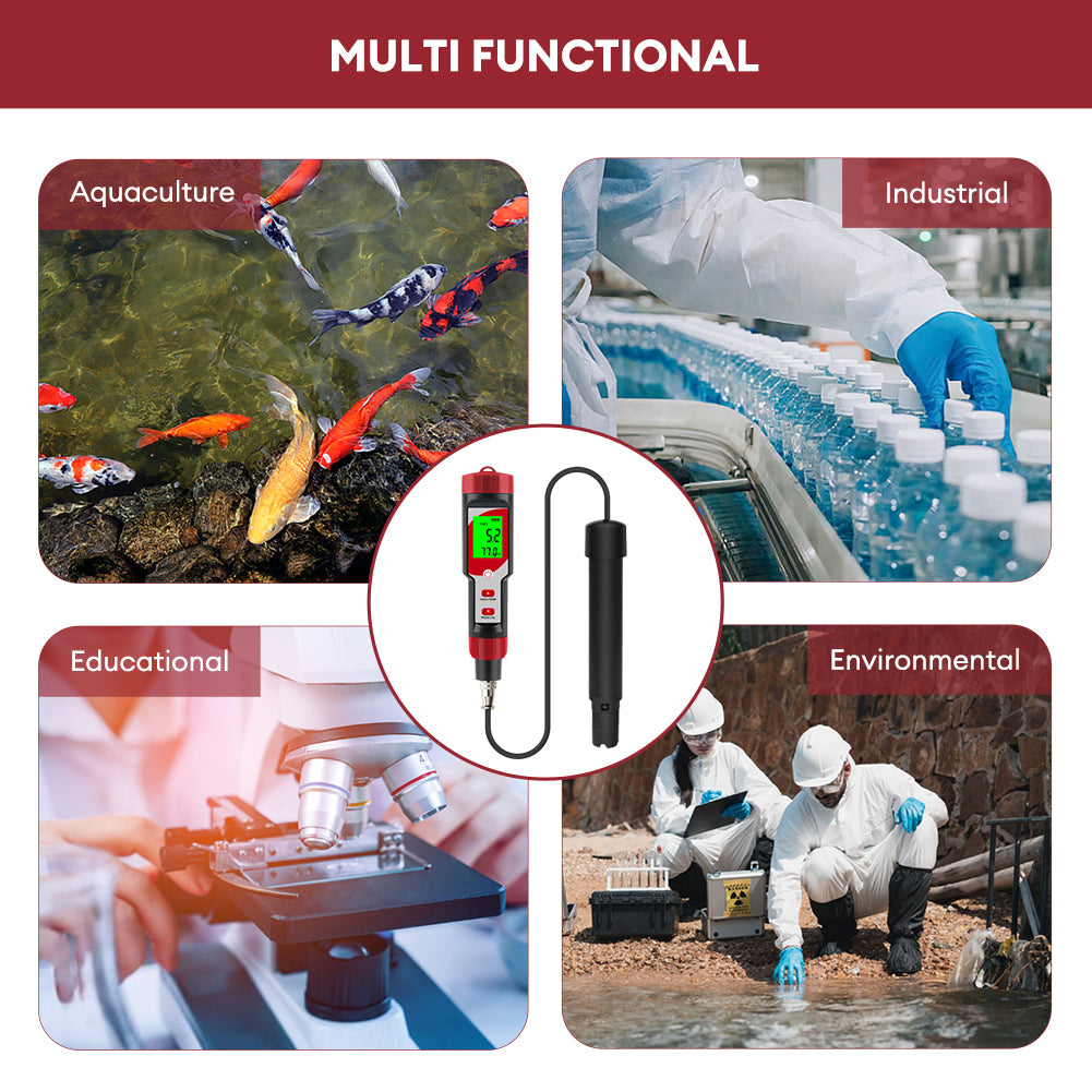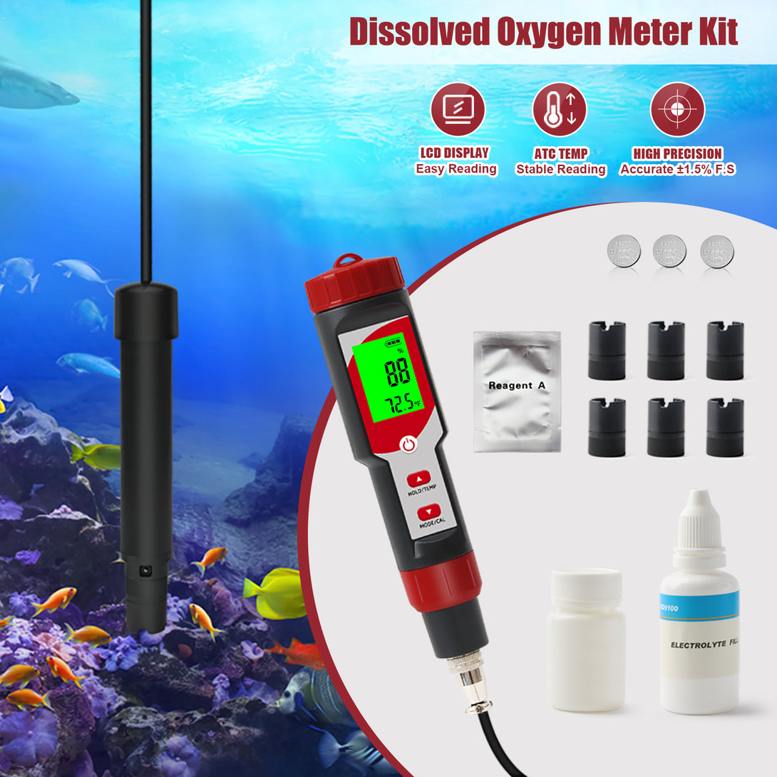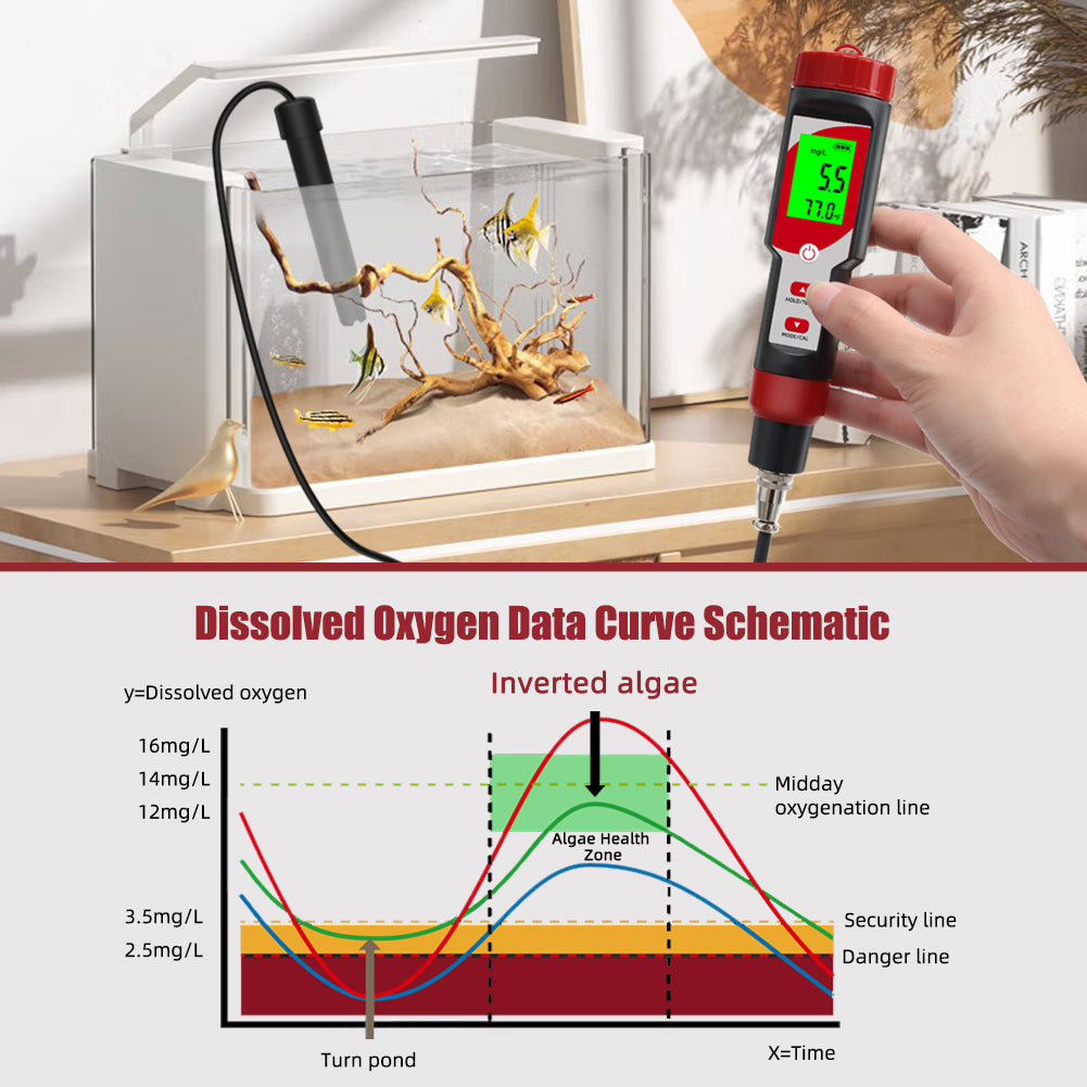 This handheld dissolved oxygen (DO) meter is designed for accurate and reliable measurement of dissolved oxygen concentration, saturation, and temperature in various water environments. Featuring a high-precision polarographic probe, automatic temperature compensation (ATC), a backlit LCD, and an IP67 waterproof rating, it's ideal for aquaculture, water treatment, scientific research, environmental monitoring, aquariums, and more.